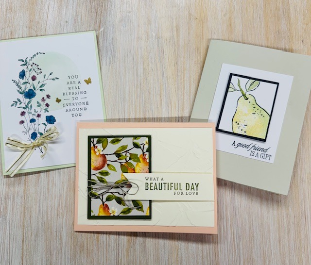 Join us for the bonus Tuesday of the month card class.It's pear season in full swing at Karenoughcrafts! Don’t forget to bring scissors and adhesive! Sorry, no refunds Sept 30that 11:30 Click "website" to register for this class