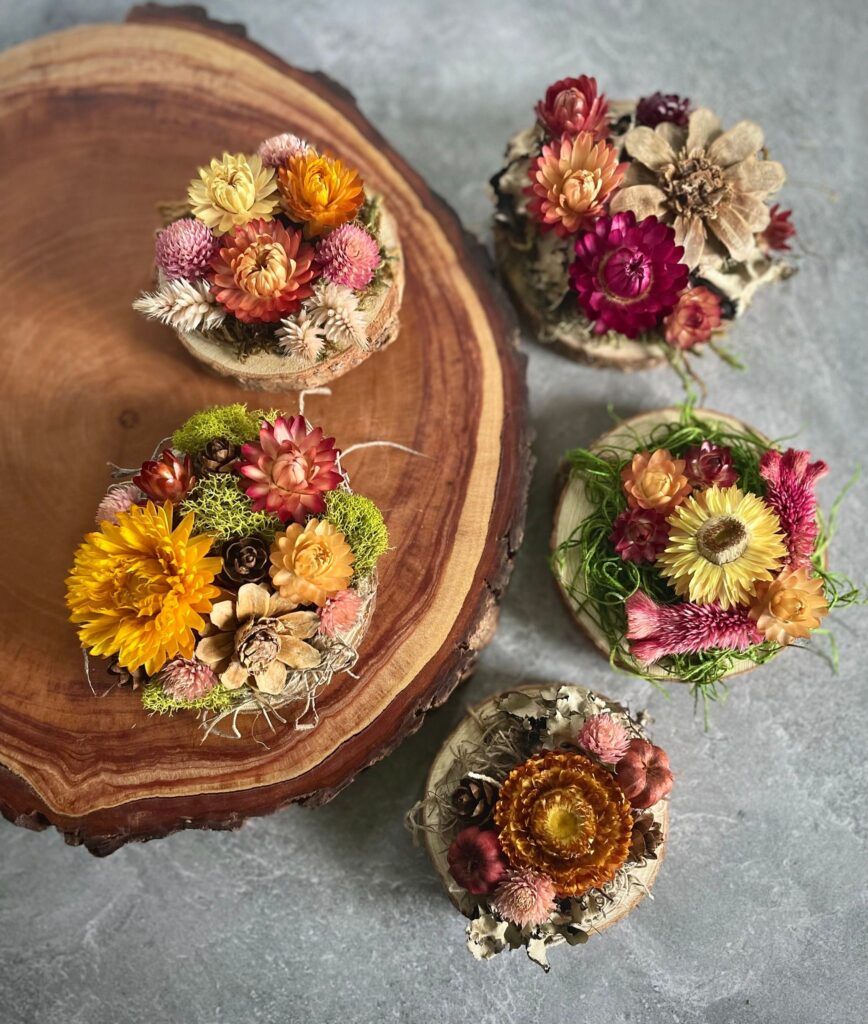 Welcome a slice of nature into your home by creating a woodland ornament to enjoy all year long! We’ll be using preserved moss, pinecones and locally grown and dried flowers