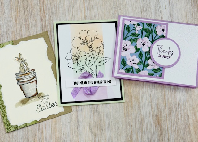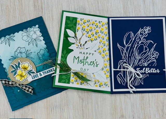 Spring is poppin’ with the yellow in these cards.Learn how to heat emboss some tulips! Don’t forget your own adhesive and scissors. April 22nd @ 3 pm No refunds Click